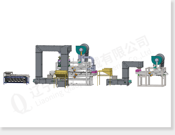 Третья секция-очистка скорлупы от ядра: приёмный бункер, Z-образный ковшовый элеватор, машина для очистки скорлупы от ядра. Эта секция может очистить скорлупы от ядра.